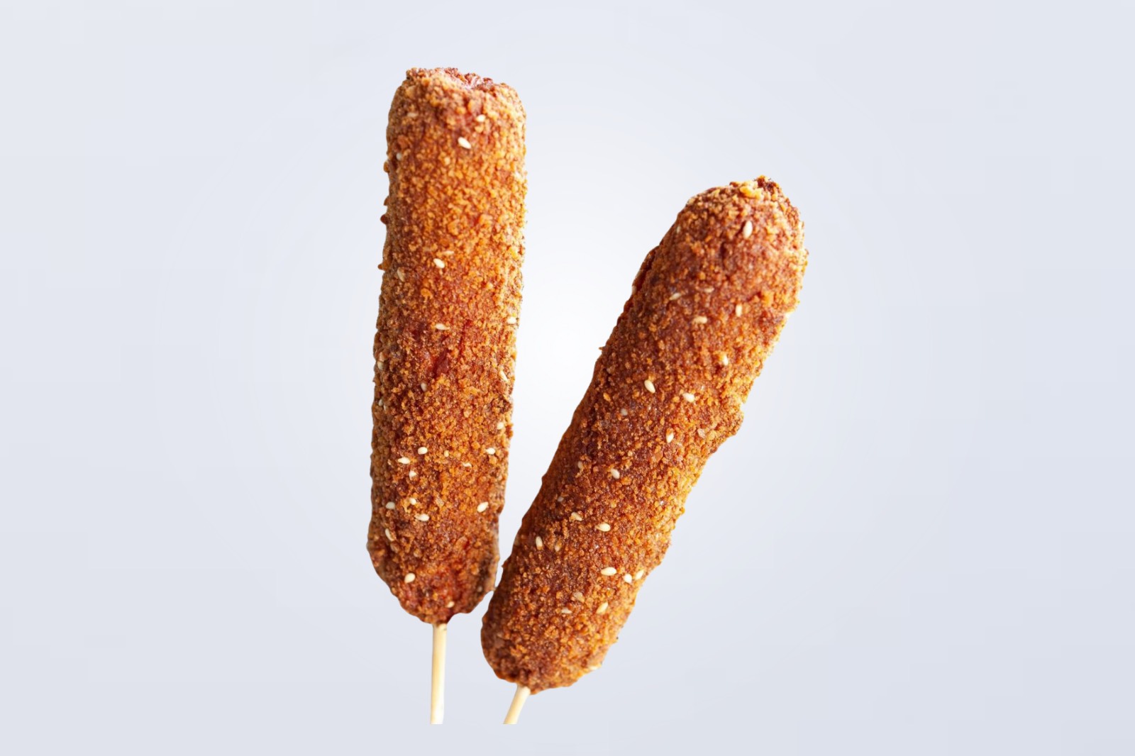 Corn Dog אמריקאי בטאץ' ישראלי מפולפל – מגיעה נקניקיה אחת בלבד.